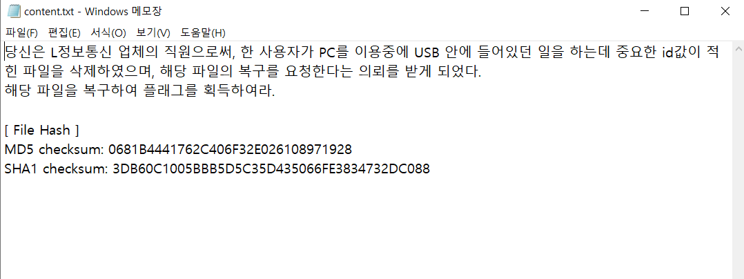 이번에도 USB 안에 들어있는 무언가를 복구하는 내용이다. id를 찾아보자.