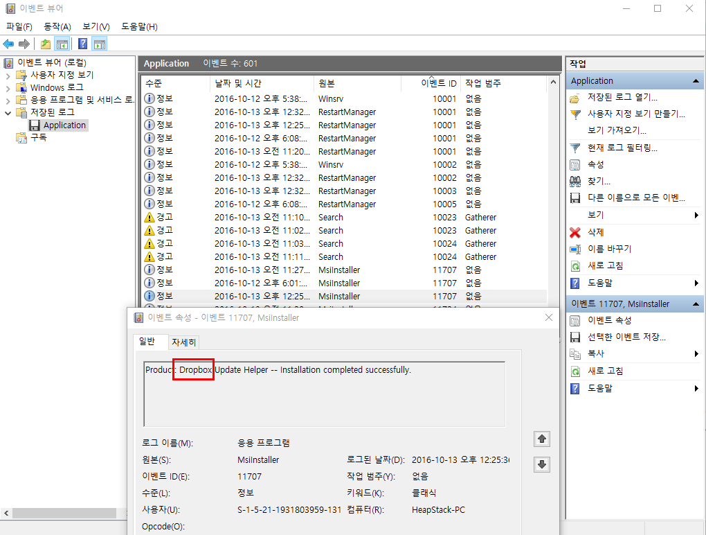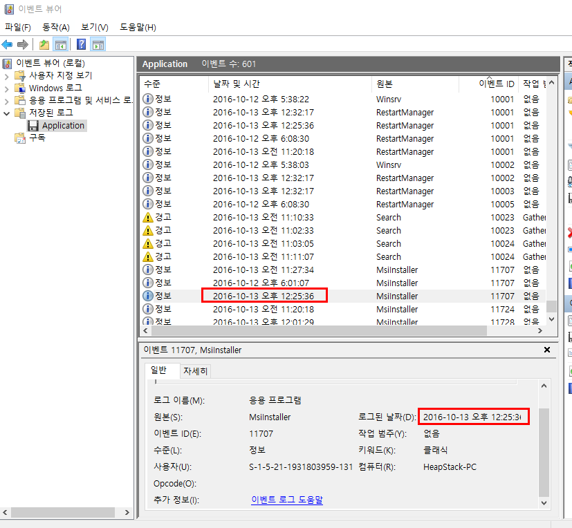 파일이 설치되는 이벤트 id를 찾아서 보니 금방 찾을 수 있었다.