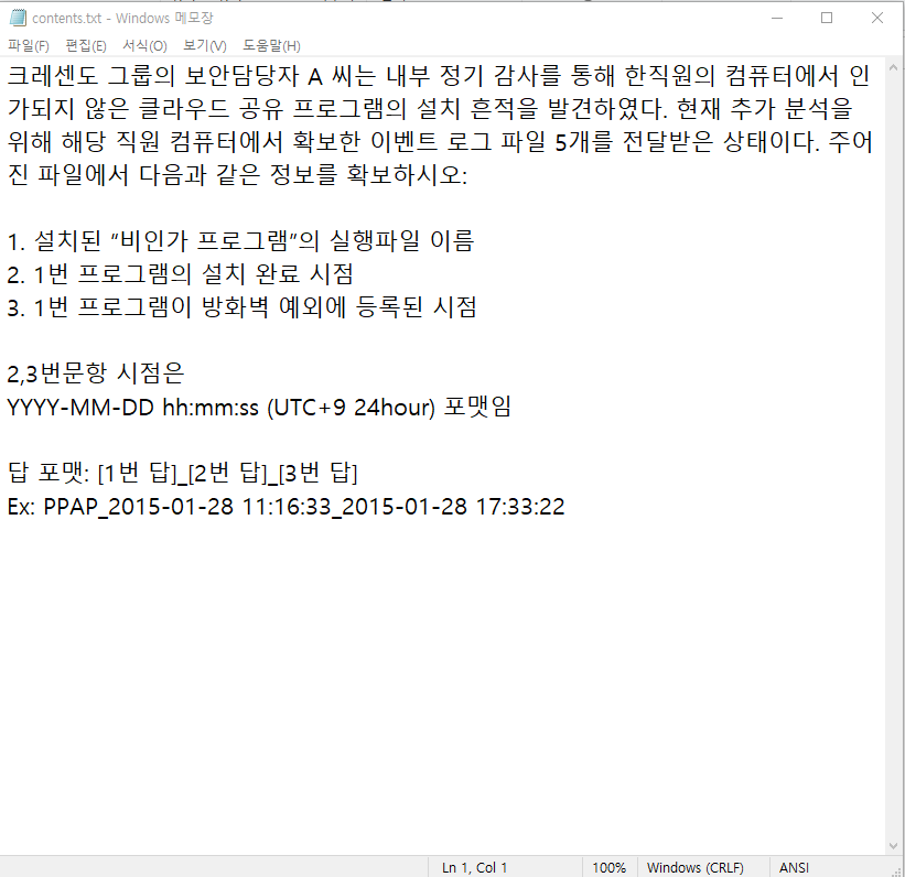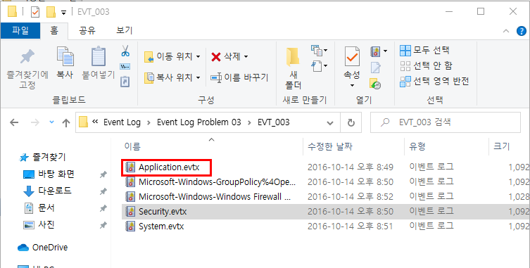 파일을 압축 해제하니깐 5개의 이벤트 로그가 나온다.