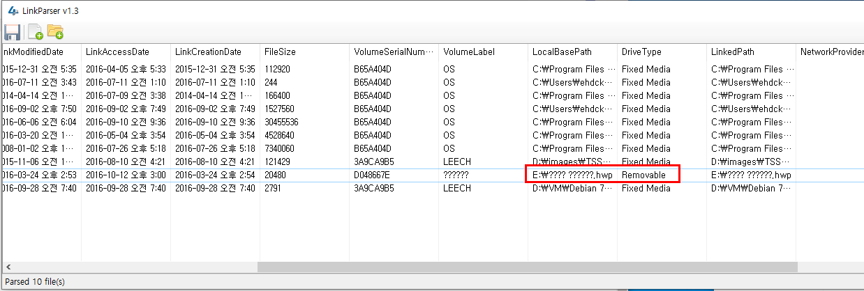 linkparser를 사용해 lnk 파일들을 살펴보았다.