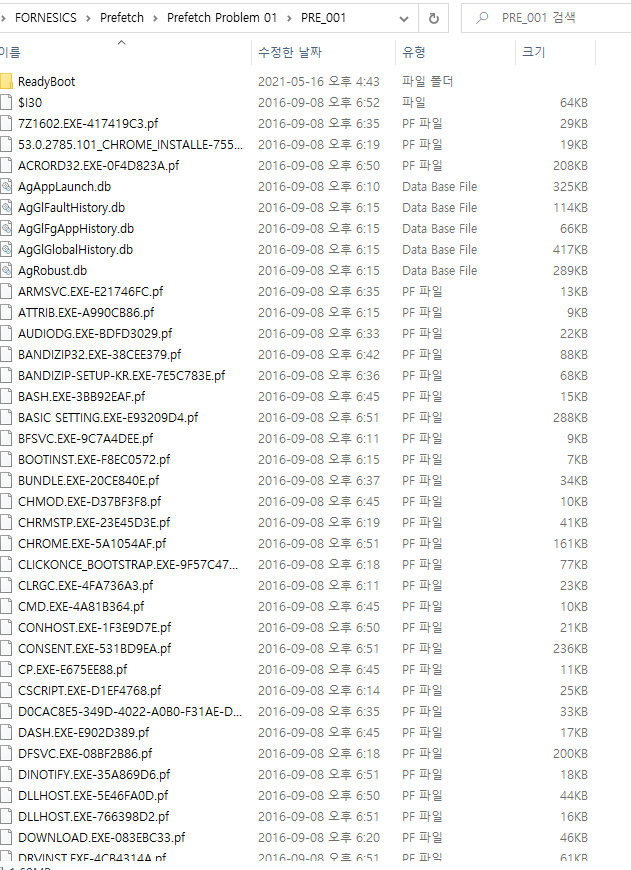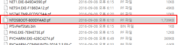 많은 파일들이 저장되어 있는데 그중에서도 부트 프리패치는 NTOSBOOT-B00DFAAD.pf 파일이다.