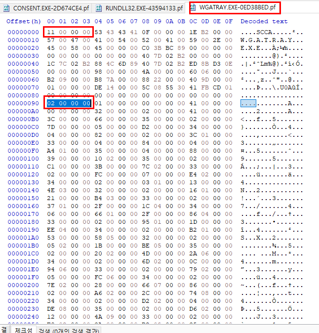 11 이면 WIN XP이다. WIN XP 버전은 2번 실행되었다