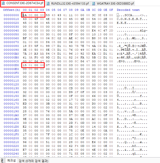 RUNDLL32.EXE는 17 으로 되어있는것으로 보아 WIN7 운영체제를 사용하고 있으며 WIN7은 1번 실행된것을 볼 수있다.