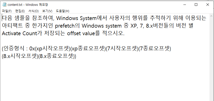 그냥 win7, 8, xp의 prefetch 구조를 알고있으면 되는 문제이다.