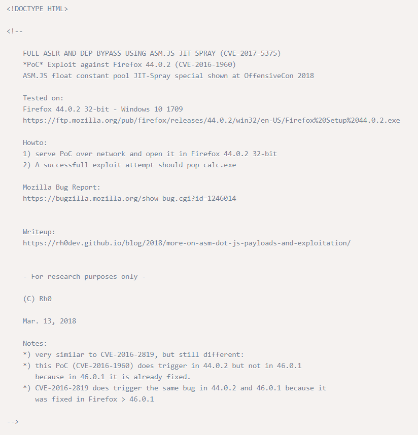 들어가면 코드들이 좌라랅 하고 나와있다. 이 코드들은 아마도 Firefox 44.0.2버전에서 실행되는 exploit code일것이다.