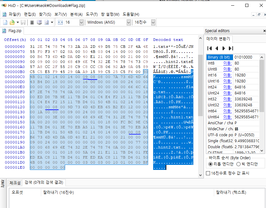 다른 애들은 다 00 08 인데 파일 헤더가 flag.txt만 09 08 이다. 00으로 바꿔보자